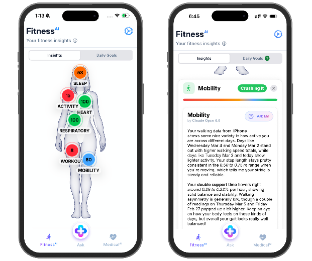 Savva can analyze a wide range of fitness and health metrics including activity, sleep, workouts, heart metrics, pulmonary data, and mobility information. AI helps interpret these signals alongside medical records to provide a broader view of a user’s health.